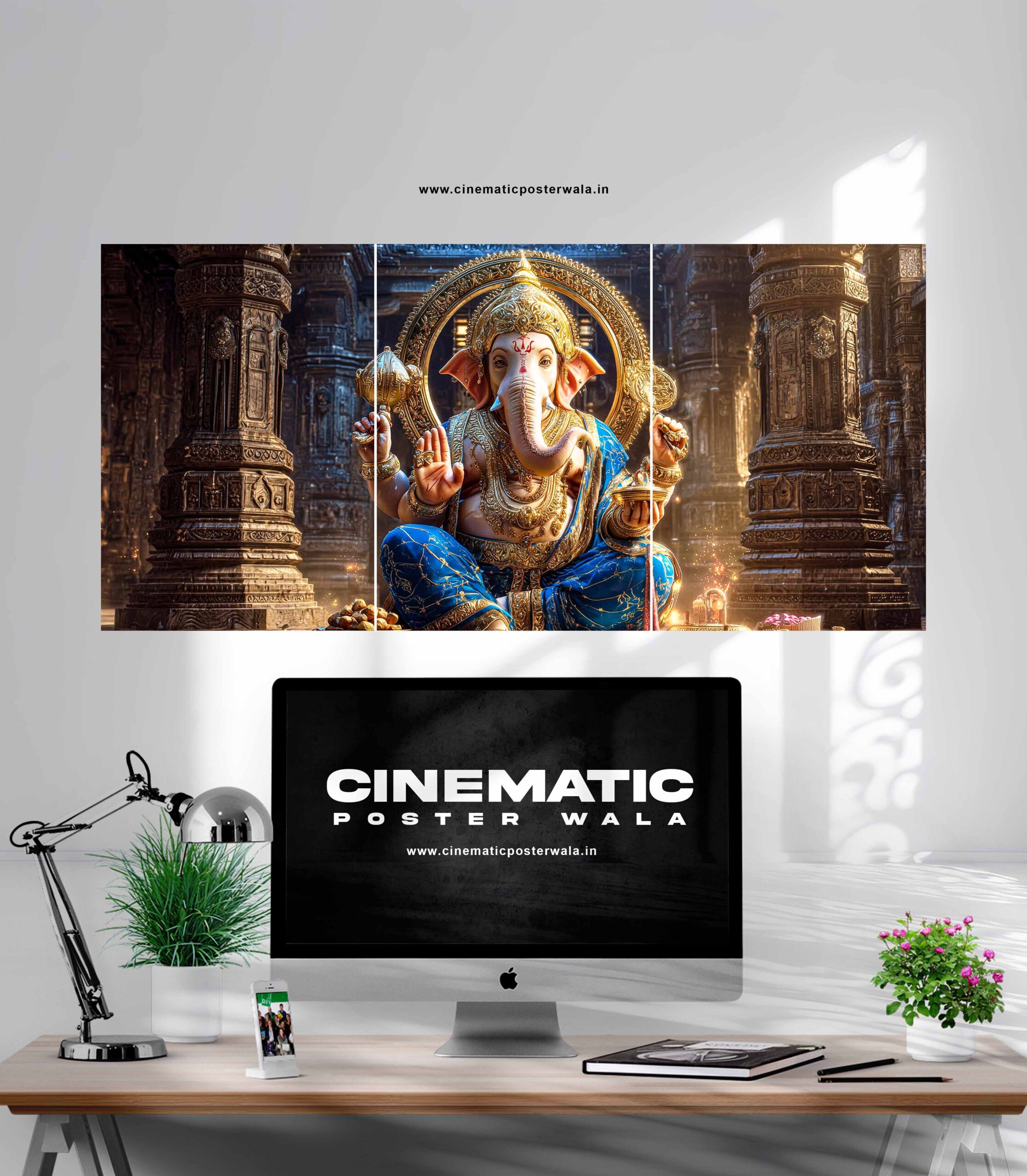 Premium Ganesha 3 Poster Set – High-quality glossy prints with vibrant, long-lasting colors. Perfect for home décor, office, temples, and gifting.